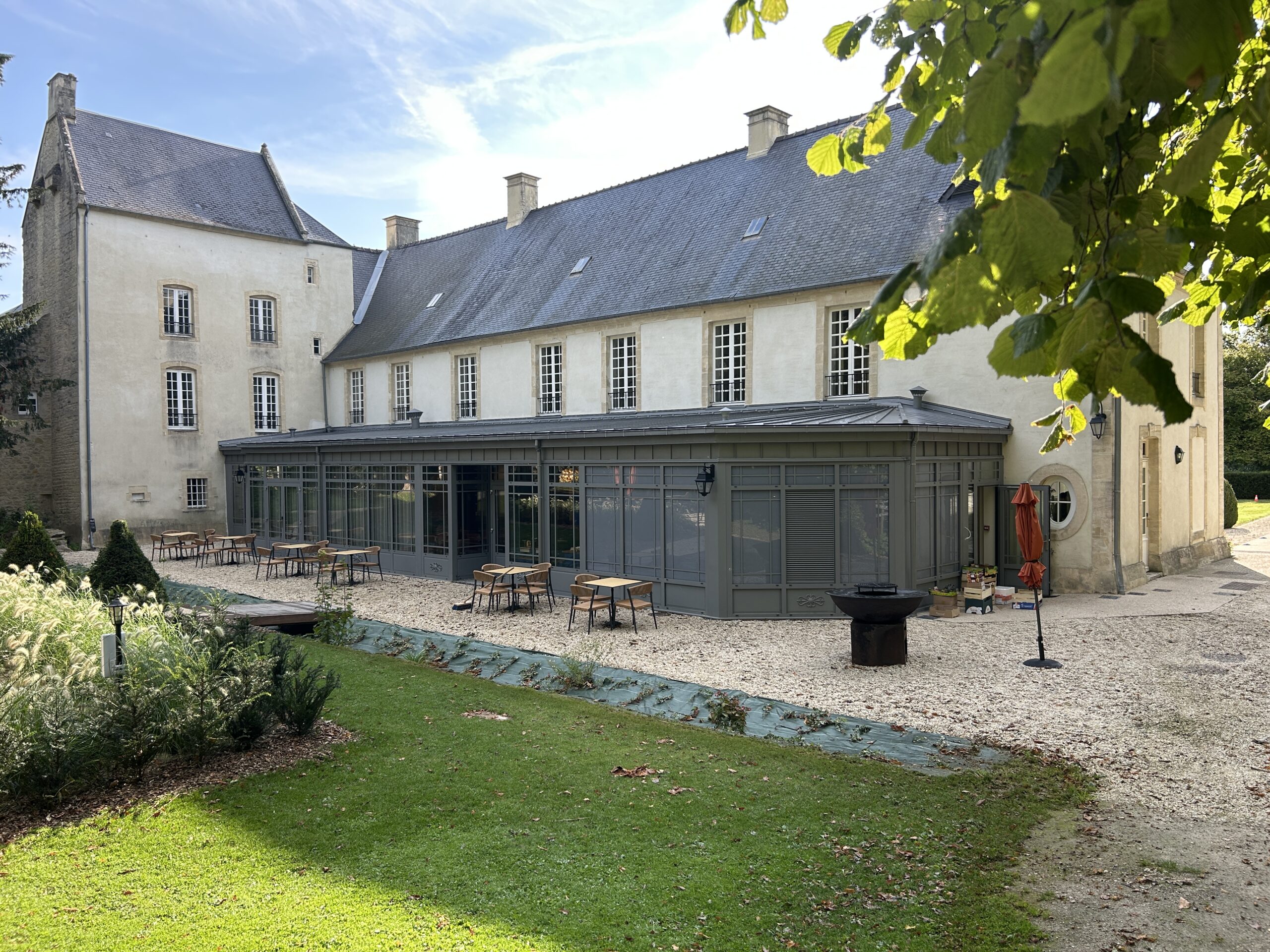 - Une extension en simple rez-de-chaussée abritant dans une verrière un restaurant élégant, une arrière-cuisine fonctionnelle et un bureau administratif.